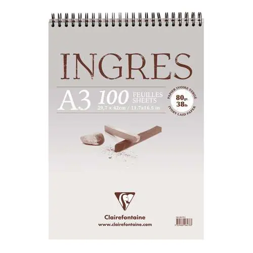 Promotion Saisonnière Bloc Ingres pour pastels CLAIREFONTAINE, 29,7 cm x 42 cm, DIN A3, 80 g/m², côtelé, Bloc à spirales Bloc à spirales | 12982