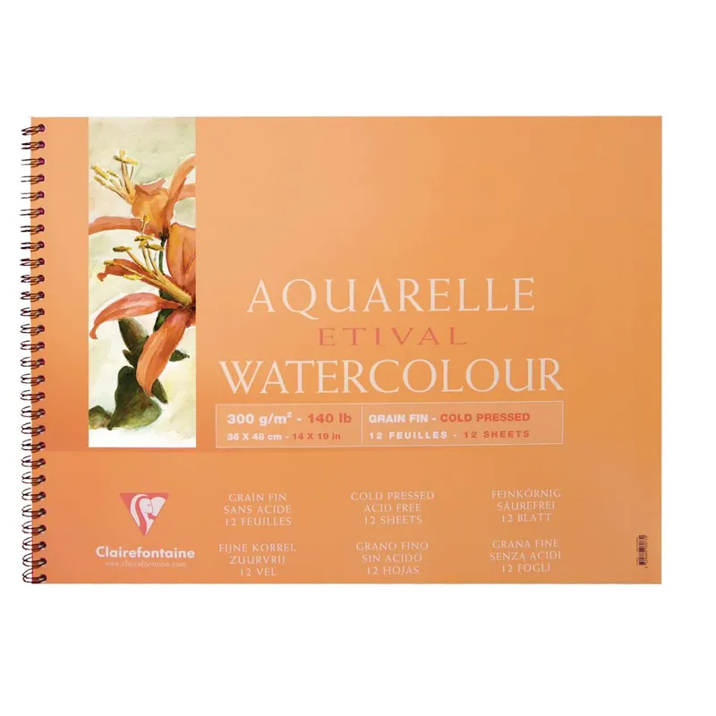 Promotion Saisonnière Bloc aquarelle Clairefontaine Etival (300g/m²), 18 cm x 24 cm, Fin, 300 g/m², Bloc spiralé Bloc spiralé | 17729