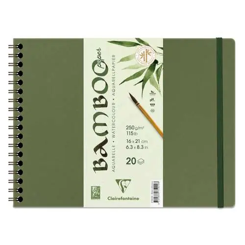 Soldes Papier aquarelle BAMBOO Clairefontaine, 21 cm x 16 cm, 20 feuilles, 250 g/m², Album à spirale Album à spirale | 66712