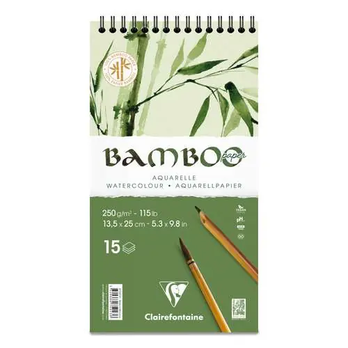 Soldes Papier aquarelle BAMBOO Clairefontaine, 13,5 cm x 25 cm, 15 feuilles, 250 g/m², Bloc à spirale Bloc à spirale | 66706