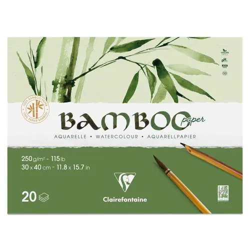 Super Prix Papier aquarelle BAMBOO Clairefontaine, 30 cm x 40 cm, 20 feuilles, 250 g/m², Bloc collé 1 côté, format paysage Bloc collé 1 côté, format paysage | 66699
