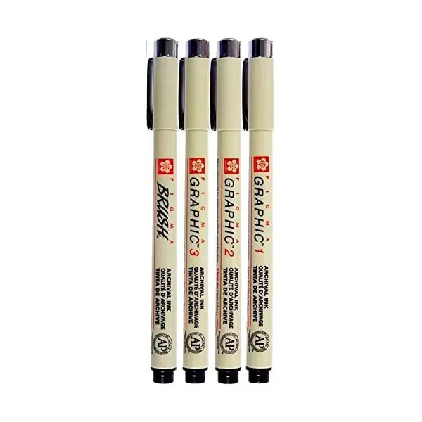 4 feutres – Noir – Sakura – Pigma Micron Brush Graphic – N°01/02/03 – Dessin Expédition Rapide
