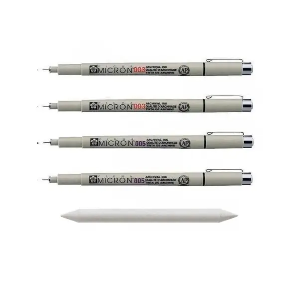 4 feutres Pigma Micron – 003 – 005 – Sakura – pointe extra fine noir + 1 estompe Populaire