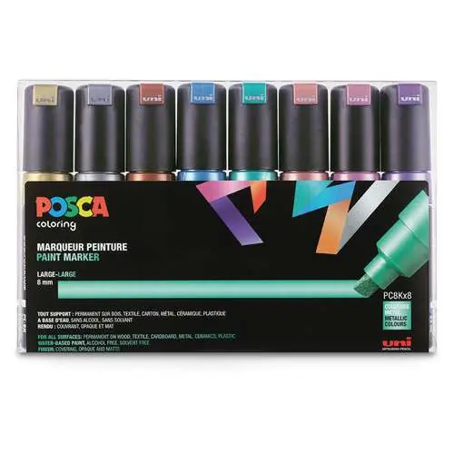 Seulement Aujourd’hui Coffret de 8 feutres pointe large biseautée PC-8K métallisés Posca